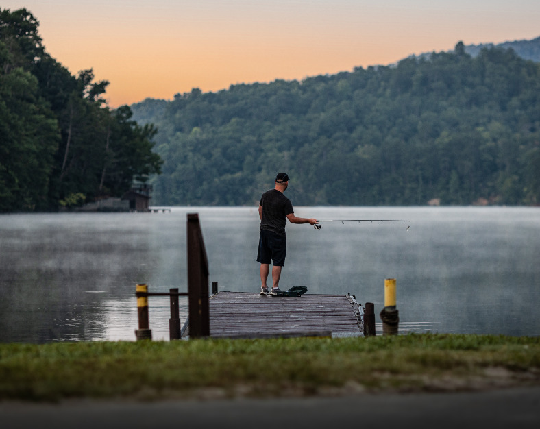Guests may also fish at Bald Mountain Lake, located inside Rumbling Bald. This smaller lake has a family-friendly fishing pier and is perfect for children. No license or permit is required here.